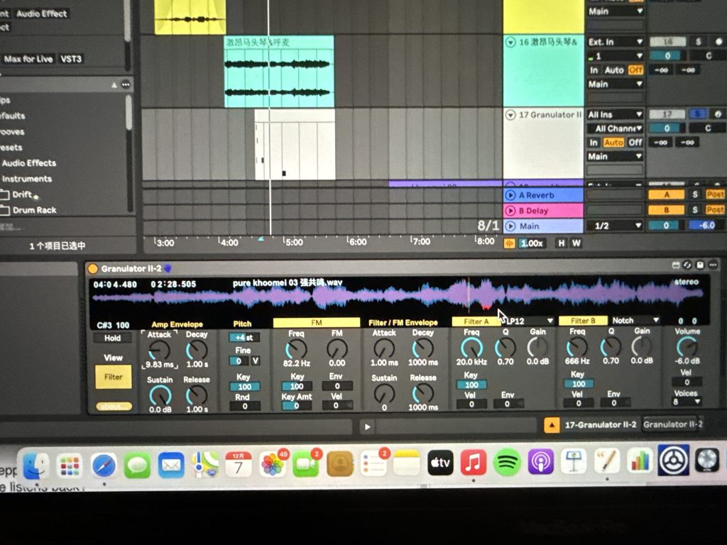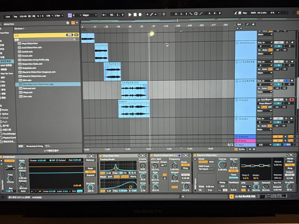 I worked on the most experimental sections. Distortion, resonators, spring noise and glitch effects began transforming the throat-singing beyond recognition.